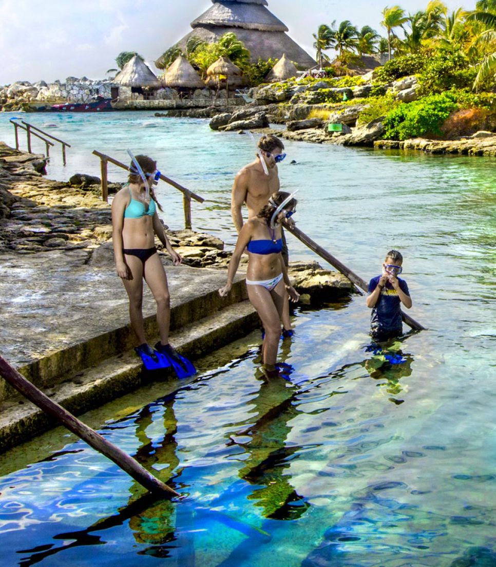 Tour a Xcaret, un parque natural ideal para disfrutar en familia; este sitio ofrece más de 50 atractivos para todas las edades, dentro de los que se encuentran nado en ríos subterráneos, un mariposario, paseos en senderos a través de la selva, el Acuario Arrecife de Coral, entre muchas otras opciones. Disfruta de hermosos paisajes, espectáculos, exhibiciones de charrería, voladores de papantla y danzas preshispánicas; además convive con diversos animales y aves exóticas. Para descansar podrás hacer uso del área de hamacas y camastros, o bien sumergirte en las albercas naturales o playa. Elige la opción de tour que se ajuste a tus gustos y presupuesto; algunos paquetes incluyen traslados desde Cancún o Riviera Maya; así como alimentos.